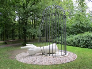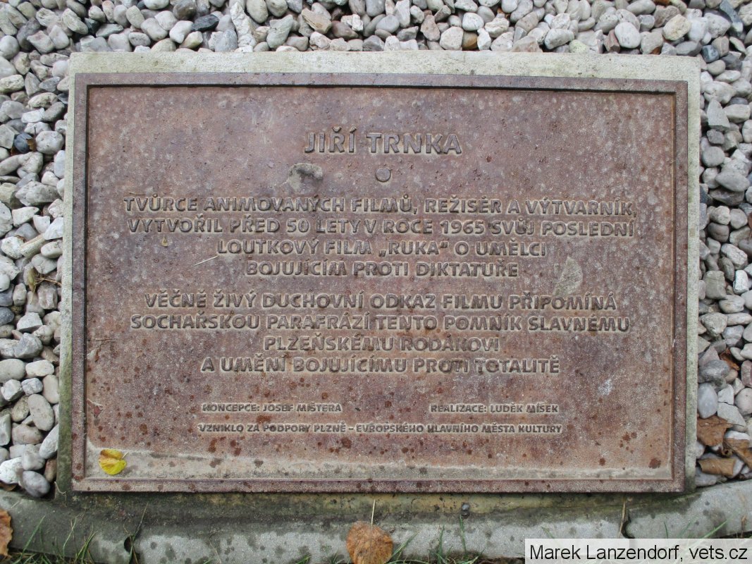 Pomník Jiřímu Trnkovi a umění bojujícímu proti totalitním režimům: http://www.pametnimista.usd.cas.cz/plzen-pomnik-ruka/