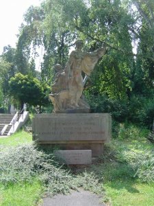 čelní strana s textem na litinové destičce v nohou sousoší: