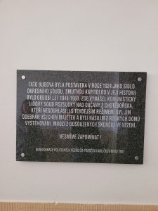 V budově se odhrávaly procesy Státního soudu proti sedlákům, odmítajícím takzvanou kolektivizaci, i procesy s protikomunistickými odbojáři, navázanými na činnost Karla Hořínka.