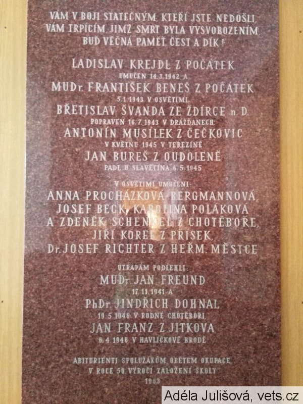 Umístění: Chotěboř, Jiráskova 637, 1. poschodí budovy gymnáziaVÁM V BOJI STATEČNÝM, KTEŘÍ JSTE NEDOŠLI,