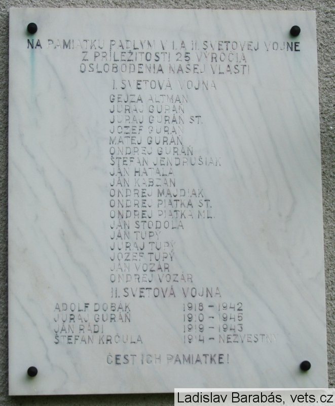 GEJZA ALTMAN, JURAJ GURÁŇ, JURAJ GURÁŇ ST., JOZEF GURÁŇ, MATEJ GURÁŇ, ONDREJ GURÁŇ, ŠTEFAN JENDRUŠIAK, JÁN HATALA, JÁN KABZAN, ONDREJ MAJDIAK, ONDREJ PIATKA ST., ONDREJ PIATKA ML., JÁN STODOLA. JÁN TUPÝ, JURAJ TUPÝ, JOZEF TUPÝ, JÁN VOZÁR, ONDREJ VOZÁR