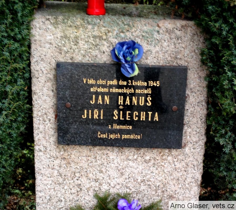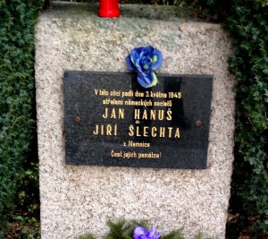 Prchajícími německými oddíly od Vrchlabí byl kominický mistr Jan Hanuš zastřelen na křižovatce a truhlářský učeň Jiří Šlechta asi o 200 m dále, směrem na Jilemnici.