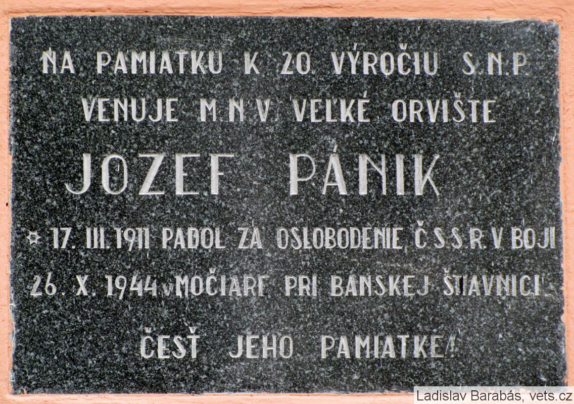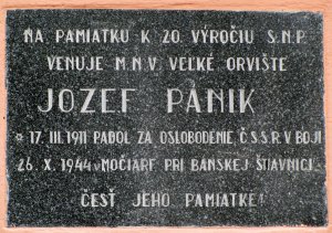 Umístění: Veľké Orvište, Hlavná 17, na budove Obecného úradu Veľké OrvišteNápis: