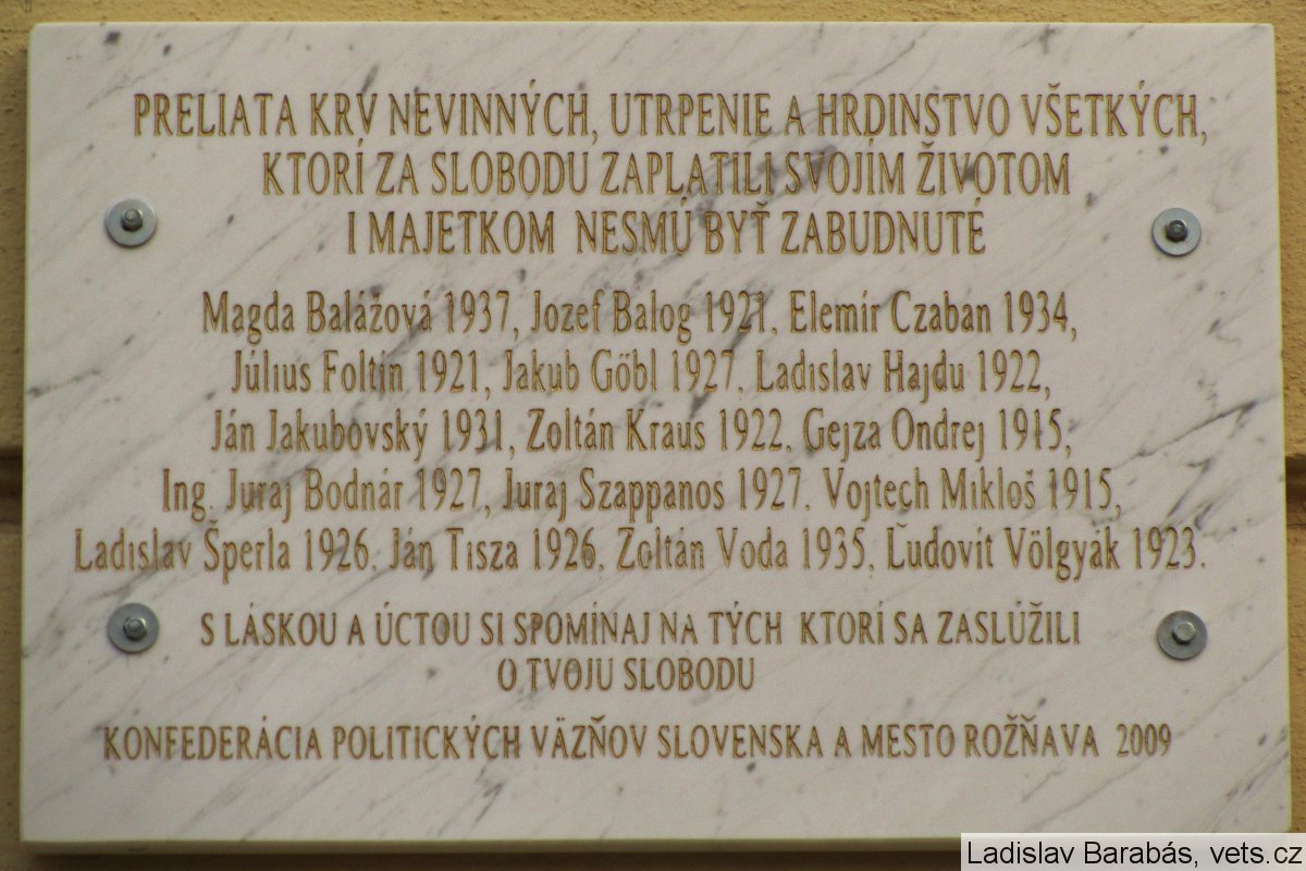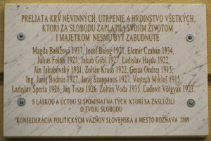 Umístění: Rožňava, Námestie baníkov 27, na Dome katolíckej charityPRELIATA KRV NEVINNÝCH, UTRPENIE A HRDINSTVO VŠETKÝCH,
