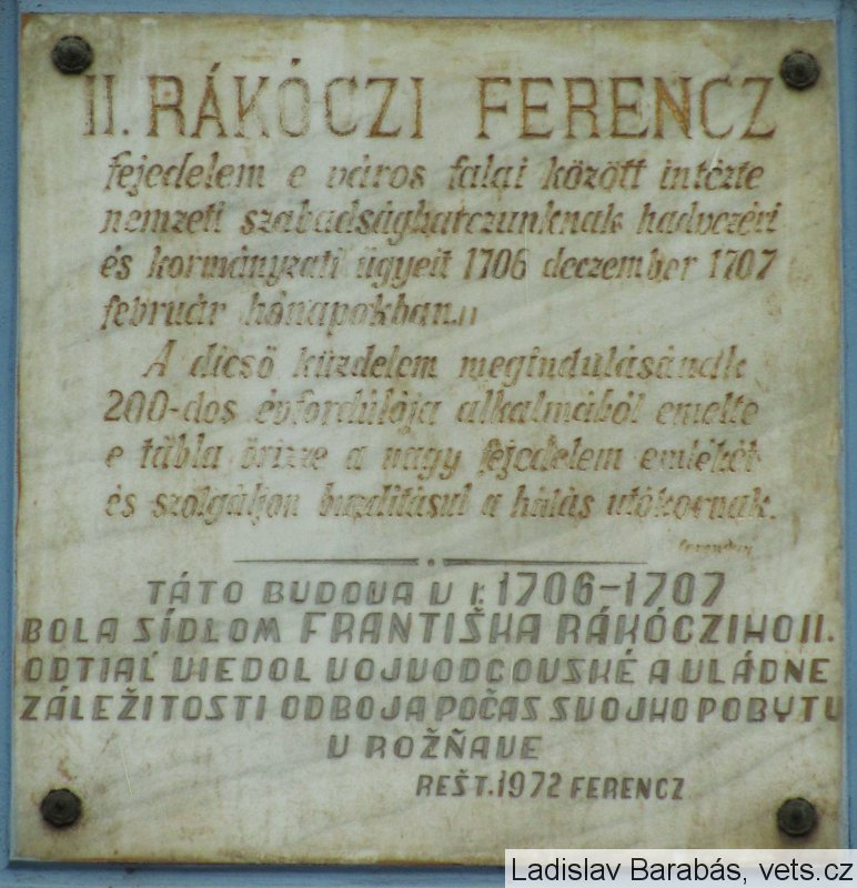 Umístění: Rožňava, Námestie baníkov 32, na budove radniceII. RÁKÓCZI FERENCZ