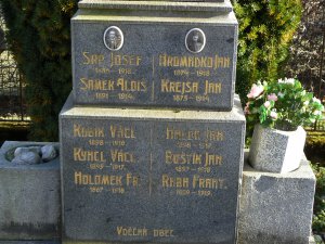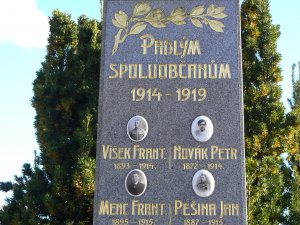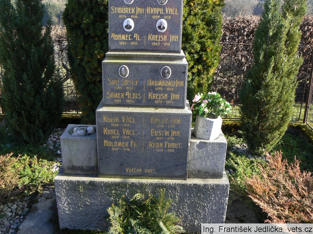 VÍŠEK FRANT. 1893 – 1914., NOVÁK PETR 1872 – 1914., MENC FRANT. 1895 – 1915., PEŠINA JAN 1887 – 1915., SAMEK JAN 1878 – 1915., NOVÁK KAR. 1873 – 1915., ŠPLÝCHAL ANT. 1897 – 1916., ŠPLÝCHAL JOS. 1878 - 1916., STIBŮREK JAN 1874 – 1916., KVAPIL VÁCL. 1899 – 1918., ADAMEC AL. 1885 – 1918., KREJSA JAN 1885 – 1918., SRP JOSEF 1885 – 1918., HROMÁDKO JAN 1874 – 1918., SAMEK ALOIS 1891 – 1914., KREJSA JAN 1875 – 1914., KUBÍK VÁCL. 1898 – 1916., HALDA JAN 1898 – 1917., KYNCL VÁCL. 1899 – 1917., BOŠTÍK JAN 1897 – 1918., HOLOMEK FR. 1867 – 1918., RABA FRANT. 1899 – 1919.