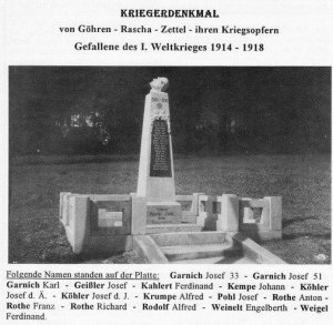 Pomník byl postaven pro padlé obcí Klíny, Rašov a Sedlo.