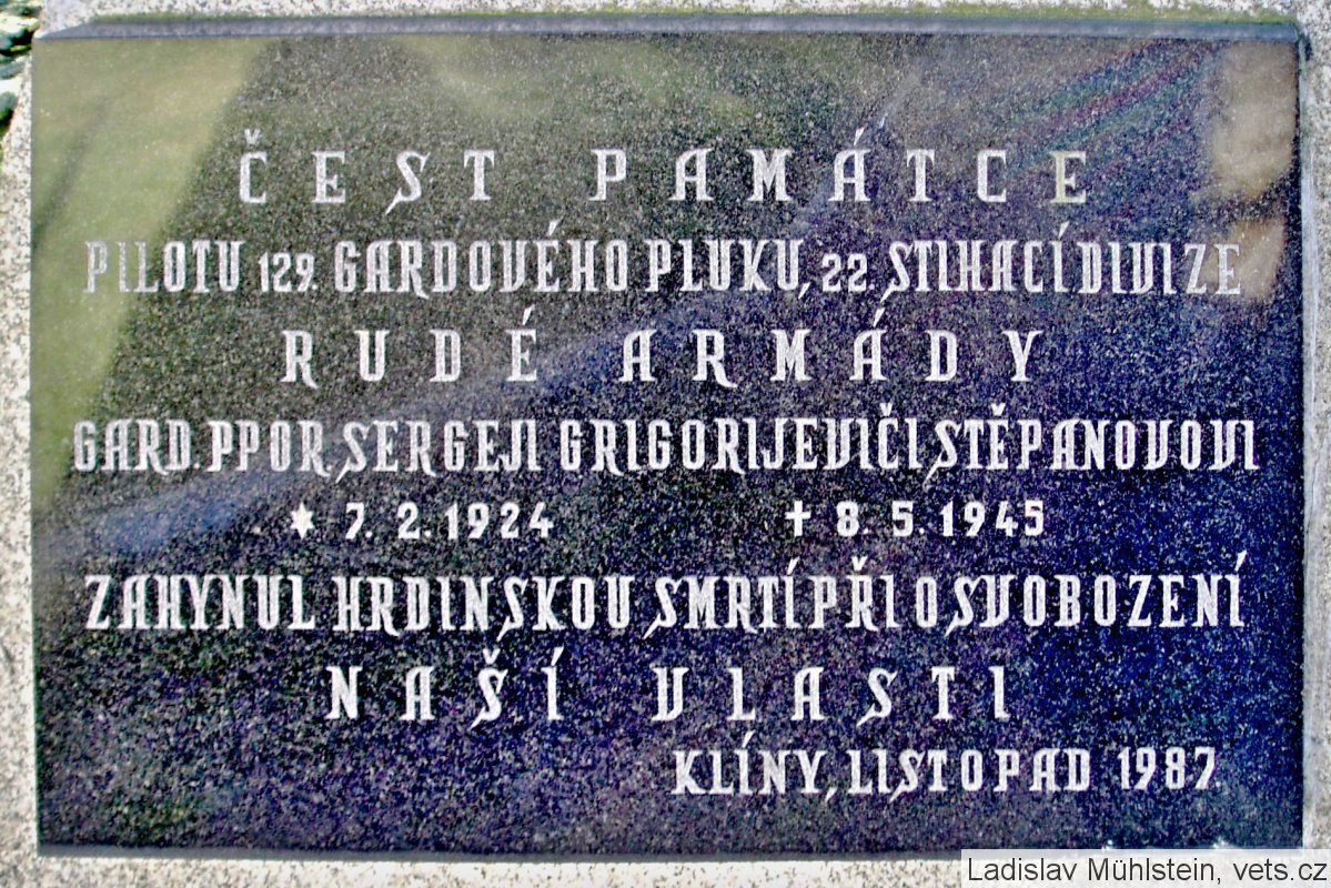 Sergej Grigorjevič Stěpanov byl sestřelen v leteckém souboji nad Krušnými Horami 8.5.1945 ve svém stroji Airacobra P39. Byl to poslední sestřel Luftvafe ve 2. světové válce.