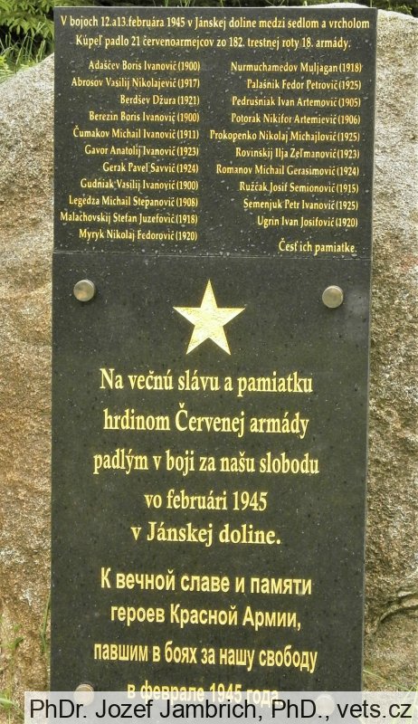 Poznámka: V bojoch 12. a13. februára 1945 v Jánskej doline medzi sedlom a vrcholom