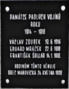 Umístění: Maňovice, ve středu obce na trojúhelníkové křižovatceNápis:
