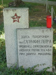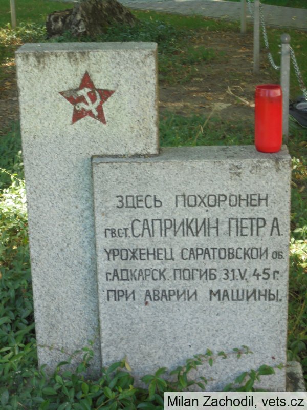 Petr A. Saprikin, gardový staršina +31.5.1945 Malšice (zahynul při nehodě), není známo, zda se jedná o hrob s ostatky