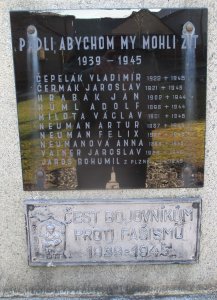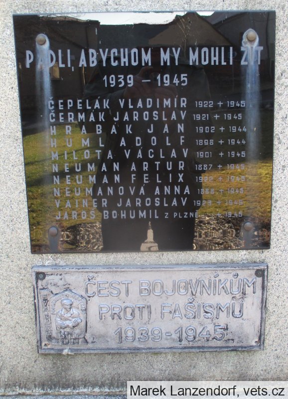 Po druhé světové válce byl doplněn deskou se jmény občanů a místních rodáků, Obětem fašismu.