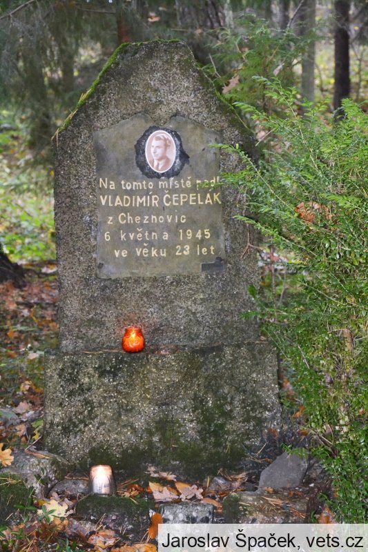 Vladimír Čepelák, soukromý úředník v Cheznovicích č. 7, nar. 2.3.1922. Střelná rána do týlu a spánku. (zdroj: https://www.portafontium.eu/ )