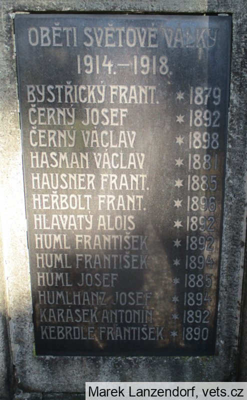 Pomník Obětem 1. světové války byl odhalen 13.7.1924 (viz foto v příloze),