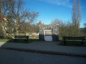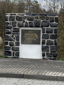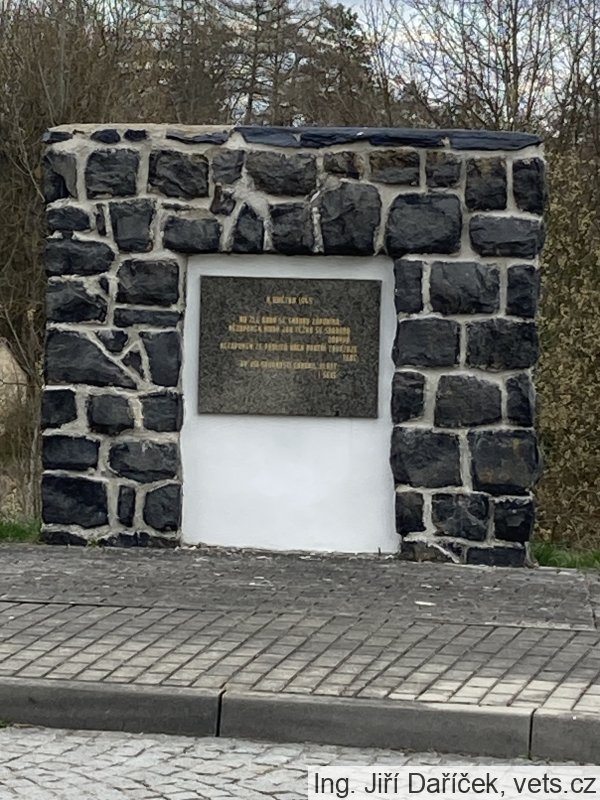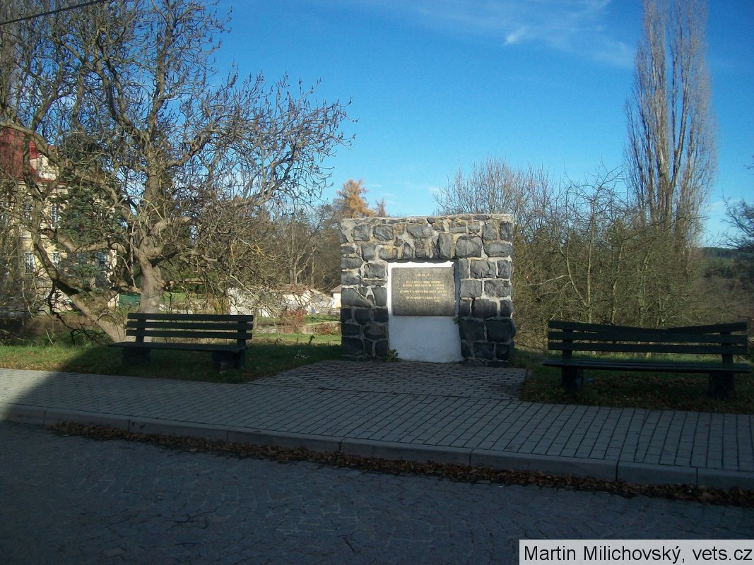 Na návsi naproti kapli připomíná již od r. 1946 svérázný památník těžké válečné roky. Okolnosti vzniku tohoto objektu nejlépe dokumentuje dobový zápis v kronice: