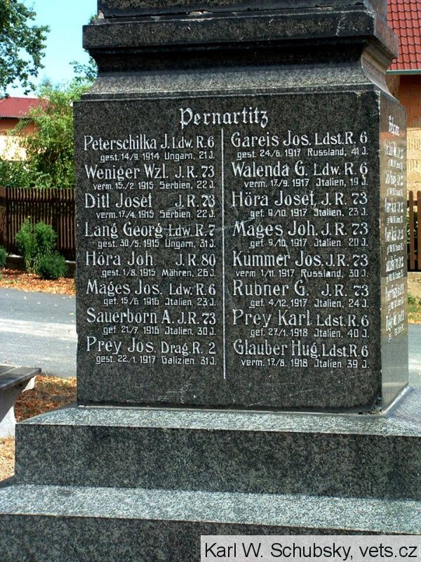 Höra Joh. I. R. 80 gest. 1./8. 1915 Mähren 26 J.