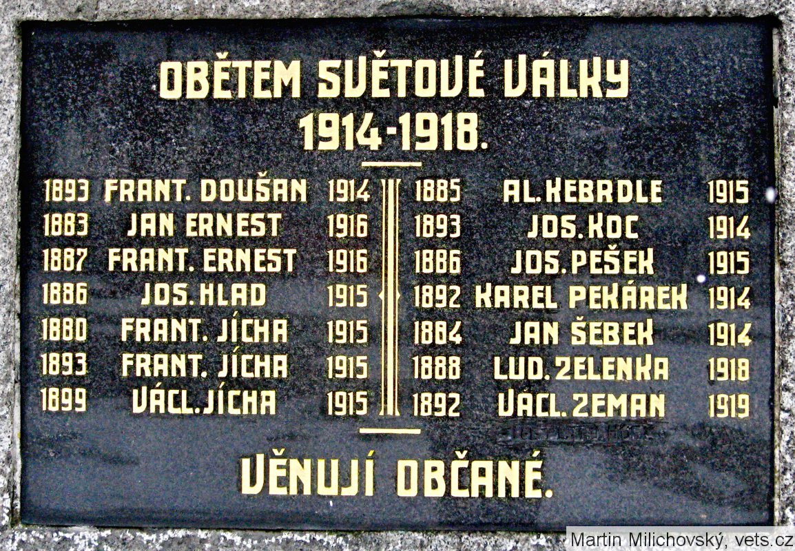 Na pomníku není uveden Ezechiel (Isaiáš) Žák, nar. 1887, Těně, padl 26.9.1914, Parašnica, Srbsko (zdroj databáze CEVH MO ČR).