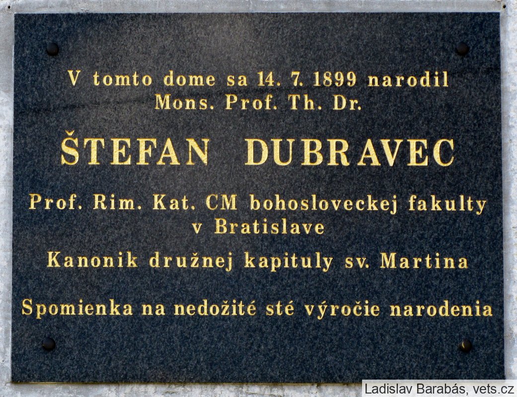 Pamätná tabuľa Štefan Dubravec