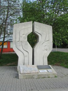Umístění: Veľký Krtíš, Námeste A.H. Škultétyho, pred budovou poštyNápis:
