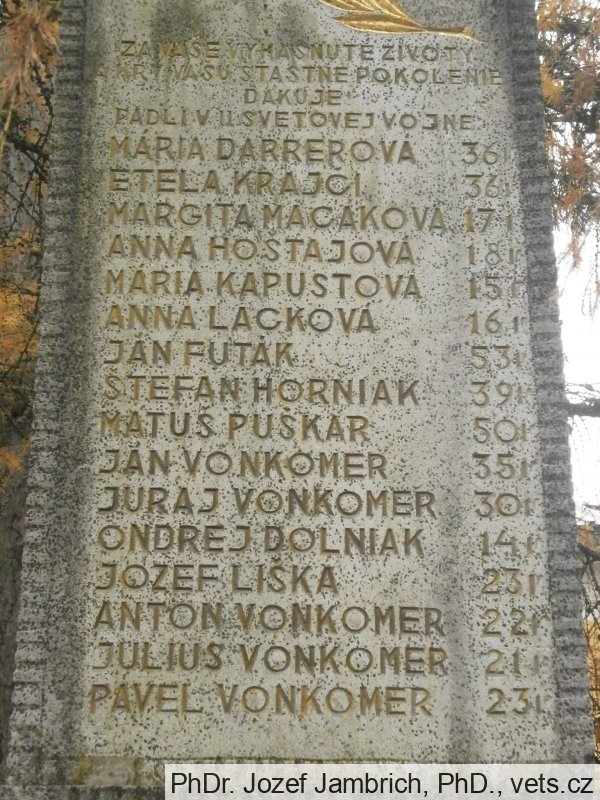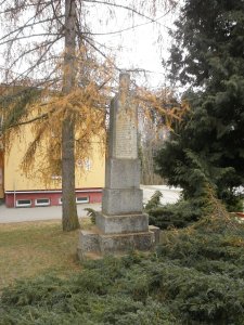 Umístění: Tŕnie, stred obce, malý park pred budovou Centra pre deti a rodiny Tŕnie č. 90 (predtým názov Detský domov Ratolesť)Nápis: