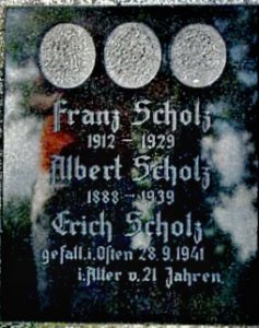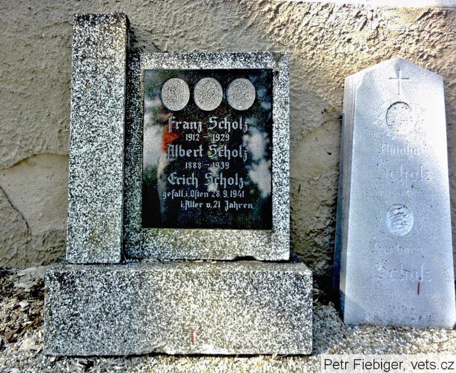 Scholz Erich: *16.11.1920 Herrnsdorf (Heřmanice, sousední obec Horní Lipky). Gefreiter. +28.9.1941 Dubrowka, řeka Desna, Ukrajina. Pohřben Dubrowka.