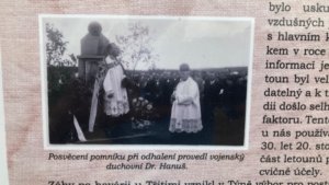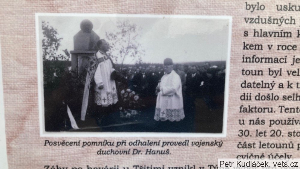 V kronice obce Třitim, rok 1930, je na str. 25 (snímek 15) uvedeno: Slavnost svěcení pomníku. V měsíci srpnu byl postaven pomník na místě tragicky zahynuvším letcům svobodníkovi pilotovi Frant. (sic) Benešovi z Modlan u Ústí nad Labem a desátníkovi v záloze Václavu Černému z Prahy. Pomník postavil pan Emil Pisinger z Týna n. Vlt. za přispění spolku pro péči o blaho venkova v Hněvkovicích. Dne 8. září byla u pomníku pořádána slavnost k uctění památky zahynulým letcům. Slavnost byla pořádána pod protektorátem městské rady Týna n. Vltavou a obecního zastupitelstva obce Třitími. Na slavnosti promluvil pam major J.U.Dr Hanuš, vojenský duchovní z Českých Budějovic, za ním promluvili členové spolků a korporací. zahráním státních hymen slavnost byla ukončena. Slavnosti se též účastnila manželka Václava Černého se svojí matkou a příbuznými.