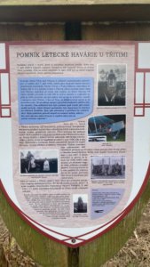 Pomník byl na tomto místě slavnostně odhalen 8.9.1930. Místo nehody je však uprostřed obdělávaného pole, takže pomník byl špatně přístupný, postupně chátral, a za padesát let z něj zbyla hromada sutin. Obnovy pomníku se ujal Okrašlovací spolek mikroregionu Vltavotýnsko a obec Žimutice, pod kterou Třitim spadá. Na místě nehody a původního pomníku byl vztyčen sloup s modelem letadla, informační tabule byla umístěna u nejbližší silnice. Místo pomníku je asi 280m jihovýchodně od informační tabule, sloup s letadlem však odtud není vidět – je schován za terénní vyvýšeninou. Když půjdete po silnici nahoru směrem k Třitimi, po pravé straně se začne objevovat.