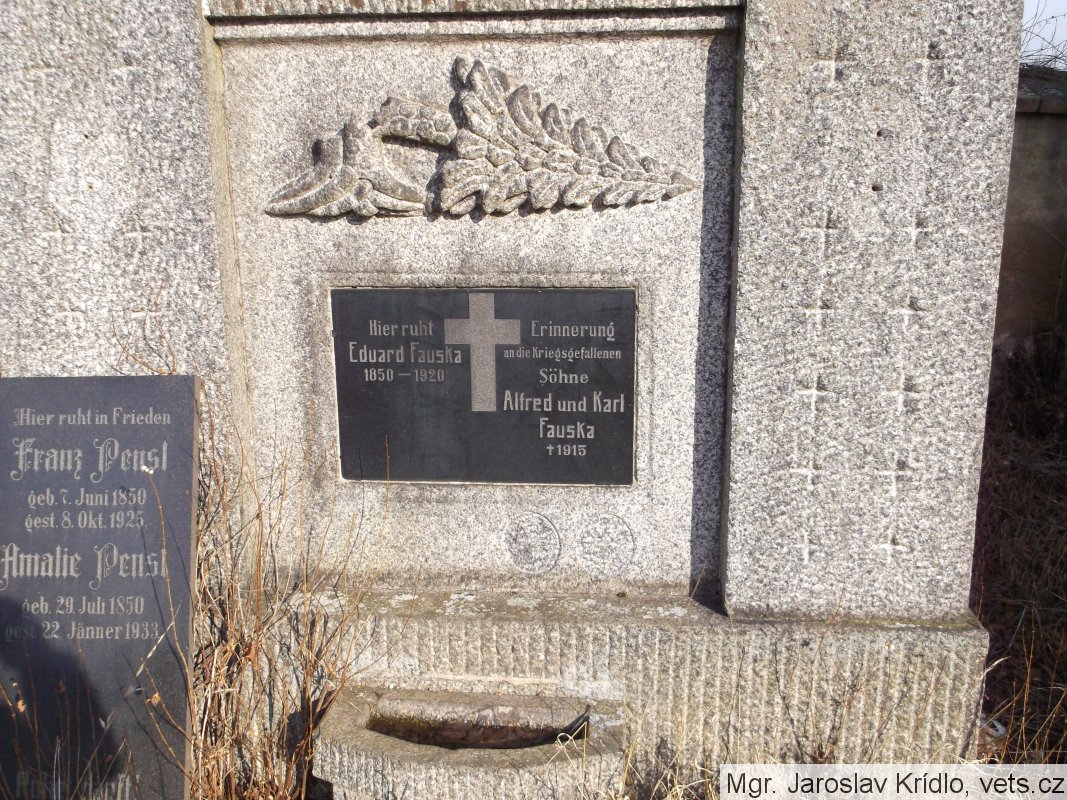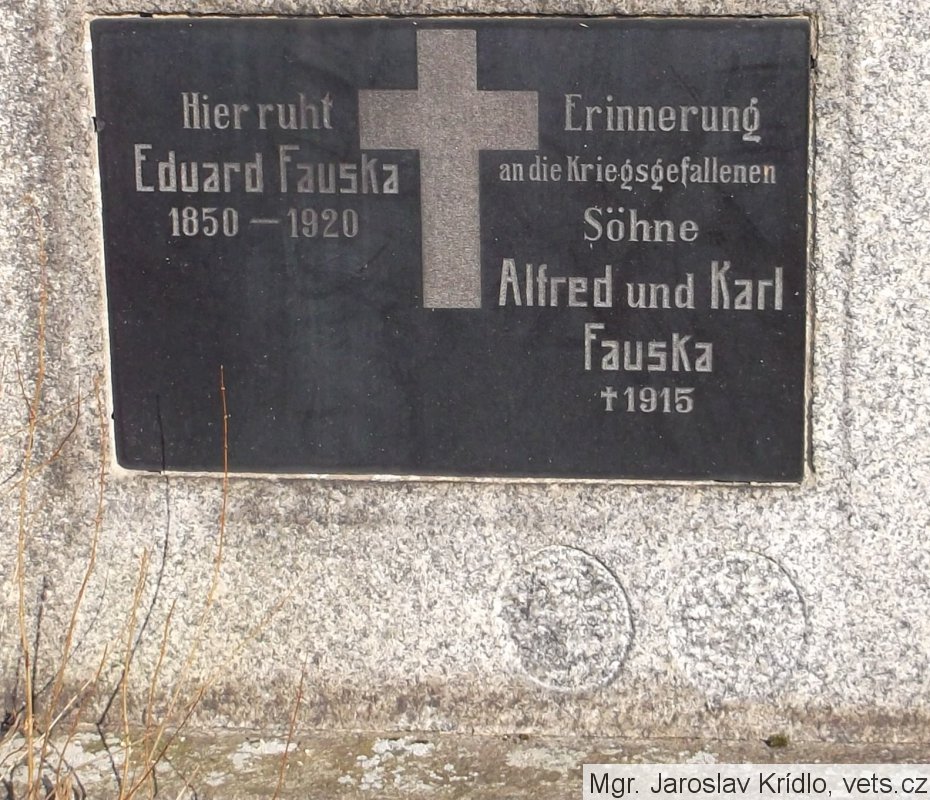 Karl Fauska: Feldw., IR.Nr.88, 1886 – 26.8.1915 Zemřel na tyfus v Boebachtungsstation Munkacz.