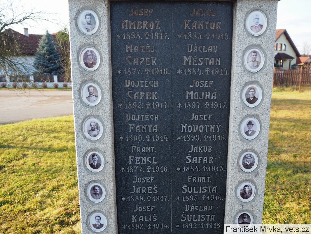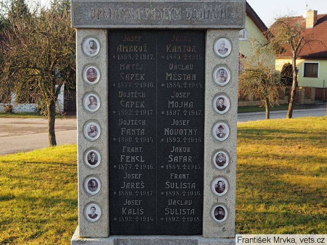 Jakub Poněšický (*4.6.1880 v Červeném Újezdci), pěšák 29. pěšího pluku, 13.12.1915 zemřel ve voj. nemocnici v Českých Budějovicích na srdeční mrtvici.