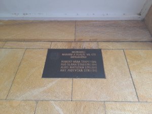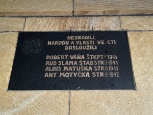 datum odhalení 21.8.2018, pamětní desku doplňuje dvojice dílů pásu tanku T55.