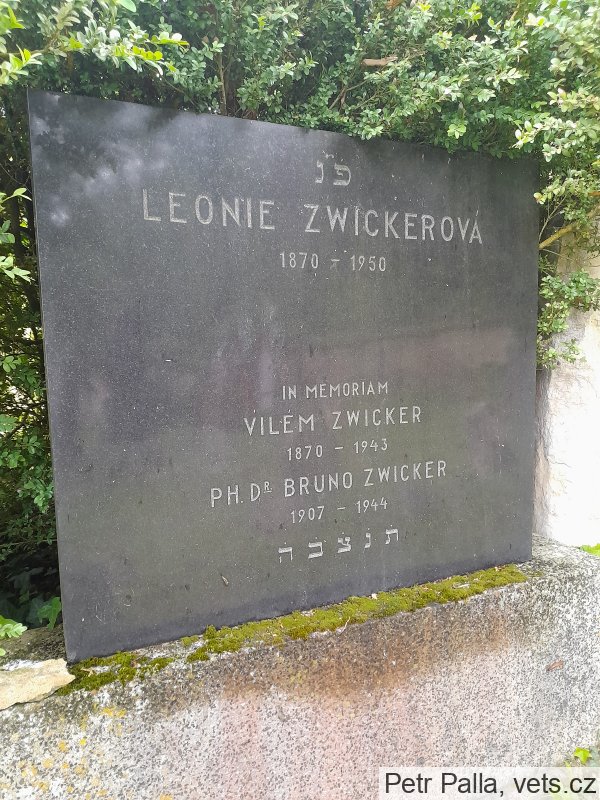Leonie Zwickerová- matka Bruna Zwickera a manželka Viléma (Wilhelma) Zwickera, narozena 18.8.1870 v Boskovicích, deportována z Brna 19.3.1942 transportem Ac-418, holokaust přežila a zemřela v rodných Boskovicích