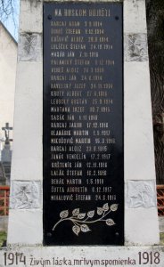 BARCAJ ADAM 2.9.1914, ĎURIŠ ŠTEFAN 1.12.1914, KOŠOVIČ ALOJZ 28.8.1914, LULÍČEK ŠTEFAN 24.10.1914, MASÁR JÁN 7.11.1916, PALANSKÝ ŠTEFAN 8.12.1914, VEREŠ ALOJZ 26.3.1918, BARCAJ JÁN 24.8.1914, HAVELSKÝ JOZEF 24.11.1914, KRUTÝ ALBERT 27.6.1916, LEHOCKÝ GUSTÁV 25.9.1914, MARTANA JOZEF 30.7.1915, SASÁK JÁN 1.11.1918, BARCAJ JAKUB 17.12.1916, BLANÁRIK MARTIN 1.5.1917, MIKUŠOVIČ MARTIN 15.3.1916, BARCAJ ALOJZ 23.8.1915, JANÁK VENDELÍN 17.2.1917, KRŠTENÍK JÁN 12.11.1916, LALÁK ŠTEFAN 16.2.1916, BENÁK MARTIN 1.5.1918, ŠUTTA AUGUSTÍN 6.12.1917, MIHAOVIČ ŠTEFAN 24.6.1916