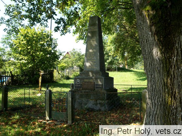 Pomník byl postaven v r. 1930. Zhotovili jej místní kameníci zdarma, neboť obec neměla k tomu potřebné finanční prostředky. Slavnost k odhalení se konala 11. května 1930, vysvěcen byl 18. května 1930. Dne 28. října 1948 byla k pomníku přistavena deska k uctění památky kapitána letectva J. Simeta. Deska byla odhalena za velké účasti obyvatelstva a vojenské posádky z Klatov. (zdroj databáze CEVH MO ČR)