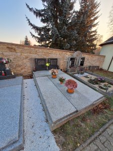 Umístění: Libchavy, v rohu hřbitova za kostelem sv. MikulášeNápis: