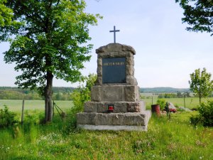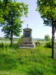 Společný pomník padlých v 1. světové válce z obcí Kůzová a Nová Ves přesně na hranici splývajících obcí. Po roce 1945 odstraněna deska se jmény a německé symboly. V nedávné době pomník opraven a opatřen novou deskou s textem „OBĚTEM VÁLKY“. Seznam padlých v 1. světové válce a zemřelých na válečné útrapy z roku 1929 uvádí tato jména (Nová Ves): Franz Plass, Hermann Waschitzka, Franz Patek, Josef Patek (čp. 41), Josef Patek (pč. 13), Franz Wenzel, Franz Soukup, Ant. Laschek, Josef Buresch, Karl Diesl, Karl Wenzl. (Kůzová): Josef Hawranek, Adolf Hawranek, Frank Nowak, Ferdinand rotz, Karl Höfer, Engelbert Plass, Wilhelm Wagner, Friedrich Wagner.