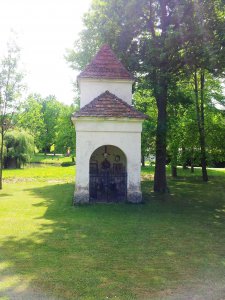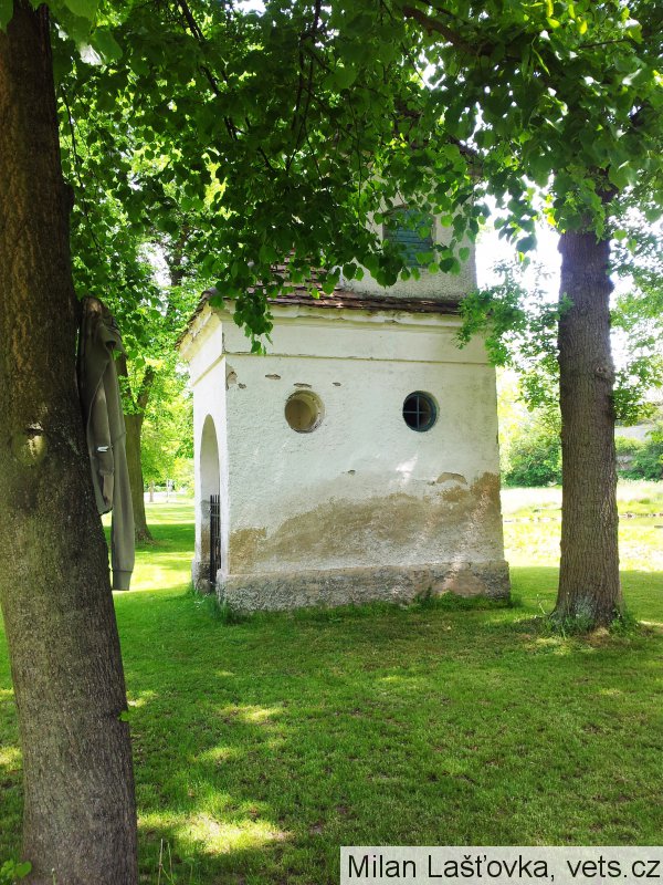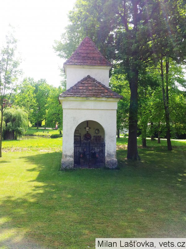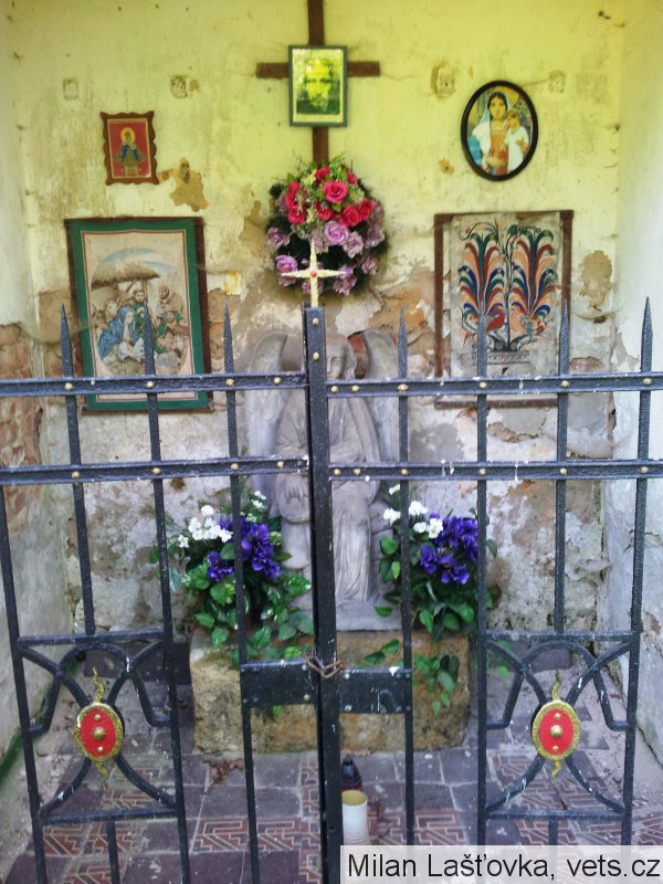 Pomník byl součástí místní zvoničky a byl posvěcen roku 1928. Padlí v 1. světové válce, uvedení na tabuli: Köppel Anton, Benesch Josef, Lechowetz Felix, Linhard Franz, Mrhal Josef, Ringmeier Franz, Ringmeier Rudolf, Stelzig Josef, Teichmann Josef, Viehmann Adolf, Grund Karl, Wachtl Konrad, Rot Richard. Jména padlých byla uvedena na dvou deskách. Před nimi stála socha vojáka téměř v životní velikosti. Kaplička se stavěla po roce 1925, současně s tím byl pro kapličku ulit v Chomutově nový zvon náhradou za starý puklý zvon. Po 2. světové válce byly desky se jmény obětí odstraněny, stejně tak socha vojáka.