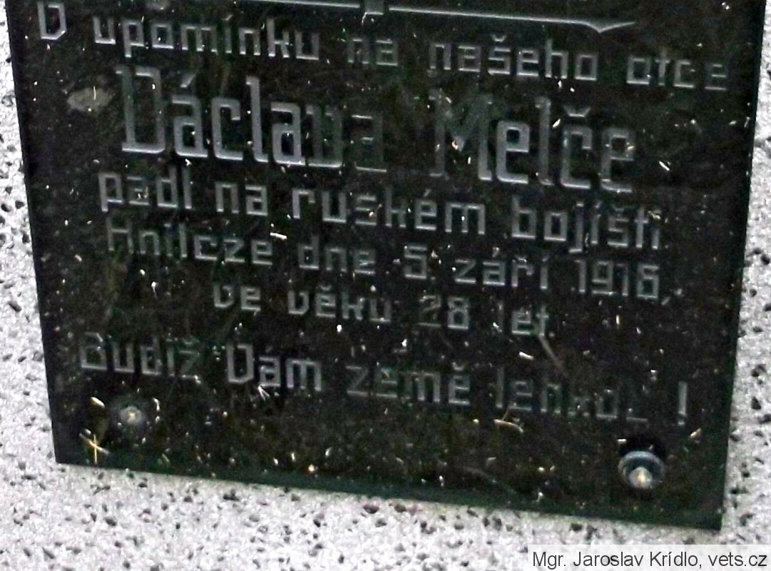 Kenotaf příslušníka rakousko-uherské armády, účastníka bojů na severní frontě, v bitvě proti Brusilově ofenzívě, která se uskutečnila 1. září až 5. září 1916 nedaleko Hnilcze, kde Václav Melč padl v boji;