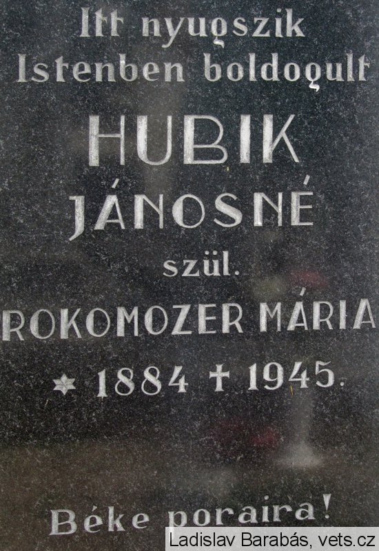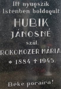 Hubik Jánosné je uvedená na pomníku v obci medzi obeťami druhej svetovej vojny