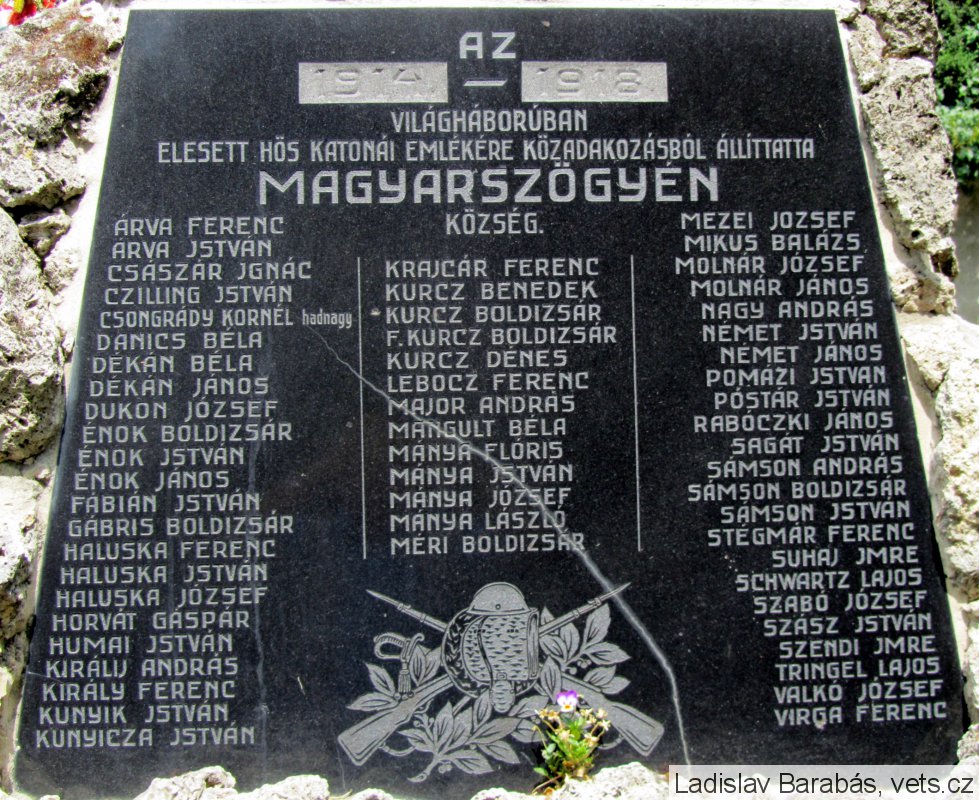 VILÁGHÁBORÚBAN ELESETT SZÖGYÉNI HÖS KATONÁK EMLÉKÉRE.