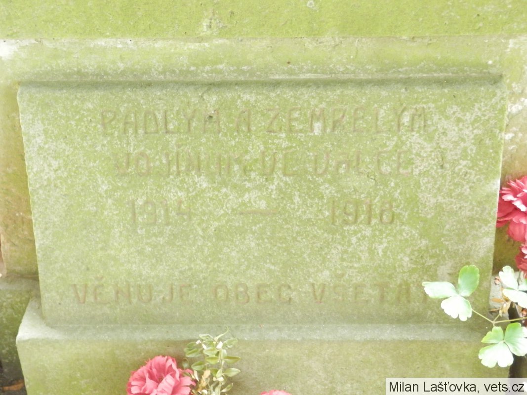 Umístění: Všetaty, střed obce mezi dvěma rybníkyNápis: