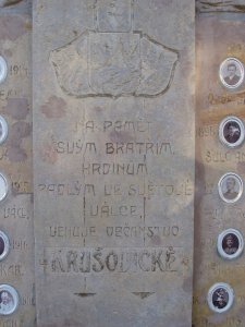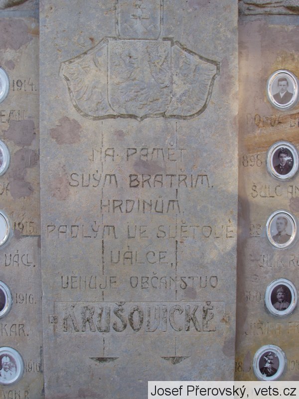 NA PAMĚŤ SVÝM BRATRŮM HRDINŮM PADLÝM VE SVĚTOVÉ VÁLCE VĚNUJE OBČANSTVO KRUŠOVICKÉ
