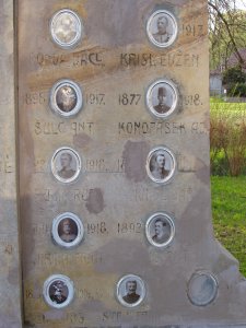 horní oválná pamětní deska je pravděpodobně připomínkou Antonín Juppa, *1887, místo narození-Kyšice, okr. Kladno, domovem-tamtéž, †7.7.1915, příčina úmrtí-zemřel, místo úmrtí-Zemská nemocnice v Laibachu (Lublaň, Slovinsko), poznámka-desátník 35. čsl. pěšího pluku;