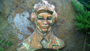 Kámen s reliéfem tankisty a tanku původně stával u hlavní brány rakovnického tankového pluku. Když ho nahradil nový pomník (věž z tanku na podstavci), byl přesunut ke správě budov, kde pracoval František Tengler z Krušovic. Ten se posléze zasloužil o to, že byl po dohodě s armádou kámen s reliéfem věnován roku 1974 obci Krušovice k výročí 700 let. Přemístěn byl na návrší do centra obce po levé straně silnice z Karlových Varů na Prahu. CEVH veden s poznámkou, že se nejedná o VH (zdroj http://rakovnicko.moonface.cz/ )