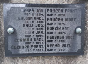 Josef Bruj, narozen 1895 Smědčice, okr. Rokycany. Střel. pl. č. 7, vojín. Padl 22. 7. 1915 Niedrzwica Mała, Lublin, Ruské Polsko, severní fronta (ruské bojiště). Místo pohřbení Niedrzwica Mała, vojenský hřbitov, řada 12, společný hrob č. 2.