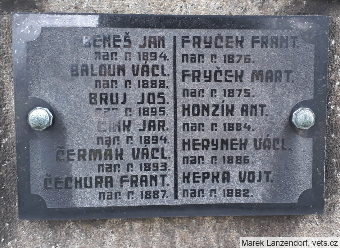 František Čechura, narozen 1887, pravděpodobně - okr. Rokycany. Zeměbranecký pěší pluk 7. Zemřel 1. 12. 1914 Moravica, Slavonie. Jižní fronta (srbské bojiště).