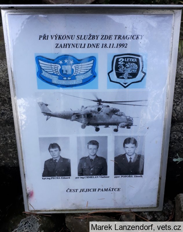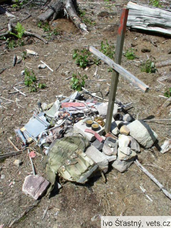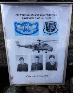 Pomníček osádky bitevního vrtulníku Mi-24, která zahynula v těchto místech, když se vrtulník v poryvu větru zřítil.
