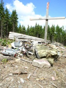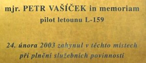 V prostoru, kam v únoru 2003 dopadl letoun L159A, jehož pilot Vašíček zahynul, byl v roce 2006 instalován nový pomník s výše uvedeným textem.
