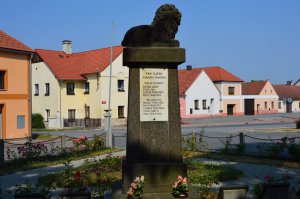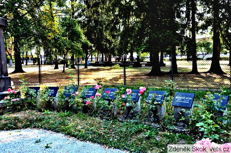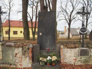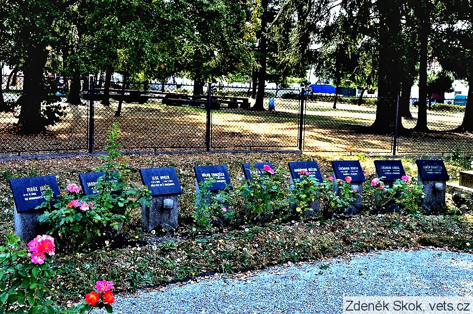 jména obětí 2. světové války na deskách okolo pomníku z fotografie nečitelná, mělo by se jednat dle databáze CEVH o tyto osoby: