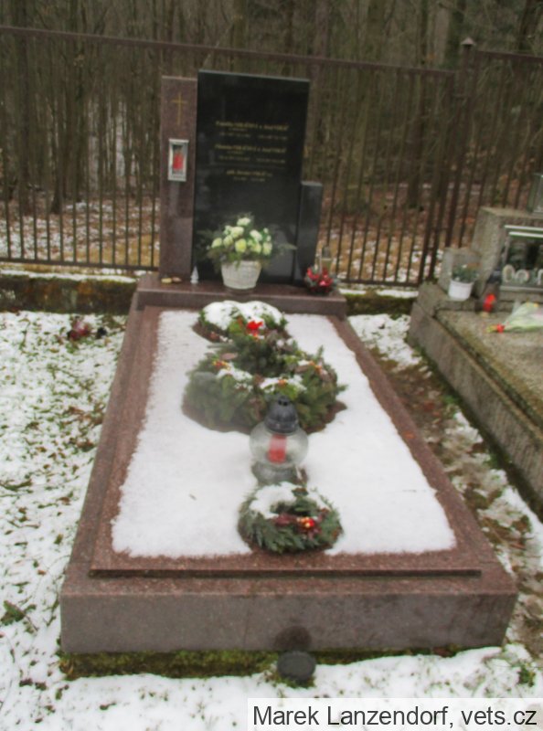 Umístění: Karlova Ves, hřbitov, za obcí směrem na sever, za křižovatkou na Roztoky, na pravé straněNápis:
