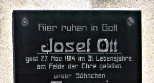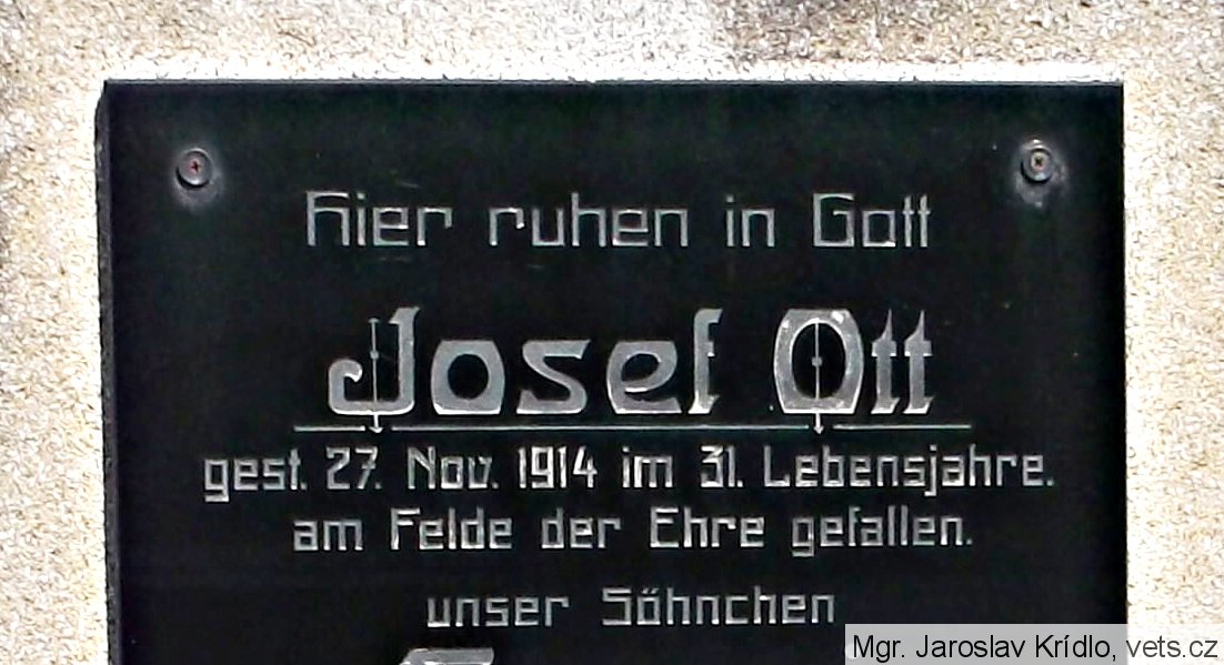 Nápis na pomníku je v rozporu s databází VÚA Praha: Josef Ott *1883, místo narození-Dolní Falknov, okr. Děčín, domovem-neuvedeno, příslušnost k 73. pěšímu pluku RU armády, †27.11.1914, místo úmrtí-Vukovo, Srbsko-jižní fronta, příčina úmrtí-zemřel, místo pohřbení-Vukovo, Srbsko, materiály polní nemocnice 9/8-prohlášen za mrtvého čj.371243/23. (zdroj http://www.vuapraha.cz/fallensoldierdatabase )